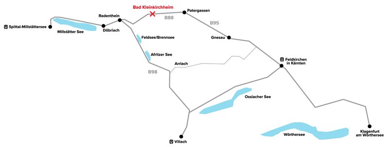 Von dort erreichst Du Bad Kleinkirchheim mit dem Nockmobil, Linienbussen oder Shuttleservices.