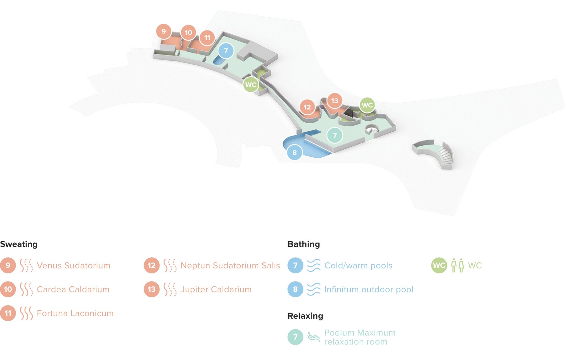 Your sauna ticket also includes automatically access to the thermal bath area, where you can enjoy more wonderfully warm thermal pools.